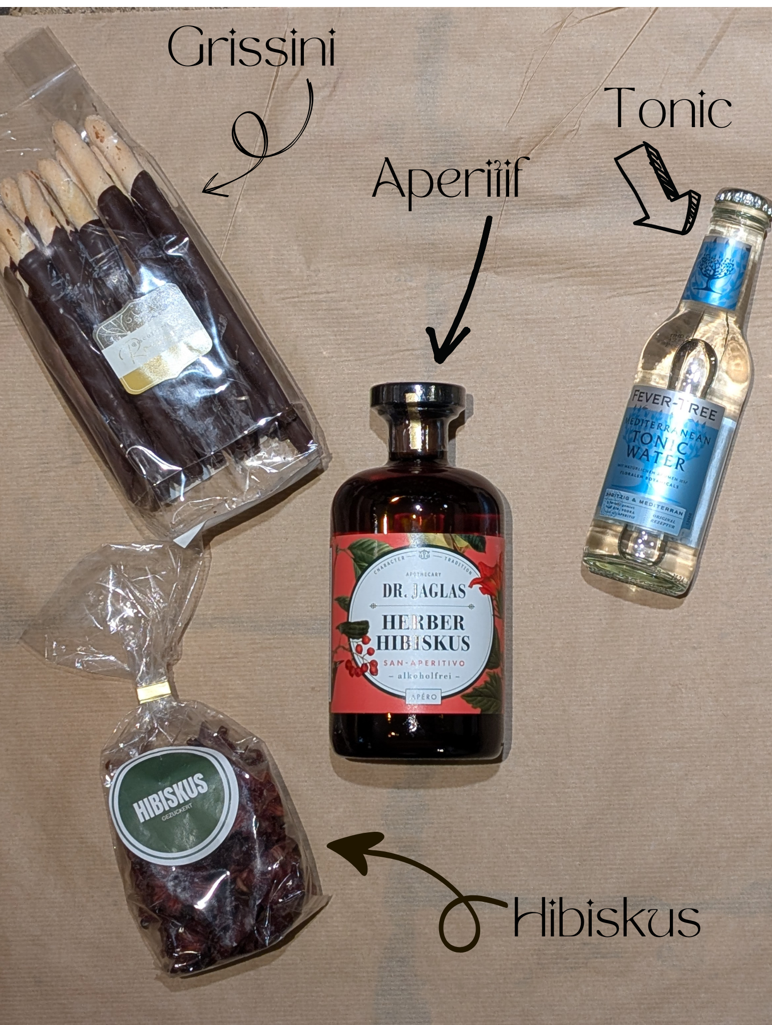 Dr. Jaglas Herber Hibiskus, getrocknete Hibiskusblüten, Grissini in zarter Bitter-Schokolade und erfrischendes Tonic Water – ein außergewöhnliches Set, das Genuss auf vielen Ebenen bietet. Der würzige Hibiskus von Dr. Jagla sorgt für eine aromatische Grundlage, während die getrockneten Hibiskusblüten mit ihrer floralen Frische eine wahre Gaumenfreude sind. Die Grissini, in edelster Bitter-Schokolade gehüllt, bringen eine verführerische Kombination aus Knusprigkeit und Süße. Das Tonic Water schließlich rundet das Erlebnis mit einer prickelnden Erfrischung ab – perfekt für ein stilvolles Getränk oder als Begleiter zu besonderen Momenten. Ein Set für all diejenigen, die hochwertige Aromen und edle Kombinationen lieben.