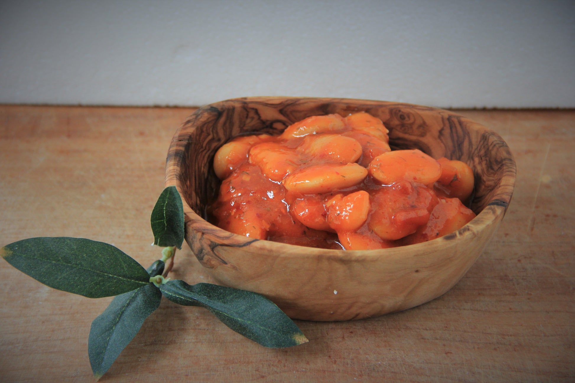 Riesenbohnen gekocht in Zwiebel-Tomatensauce
