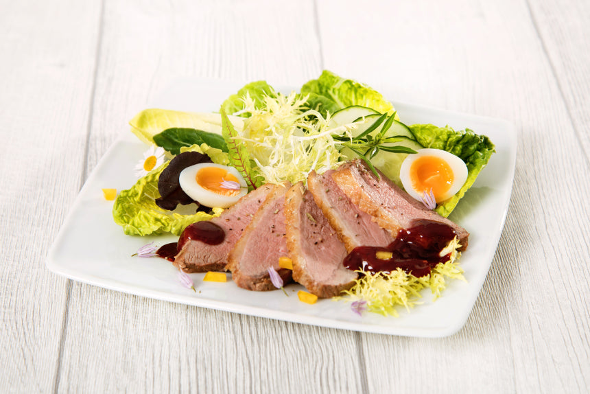 Salat mit Entenbrust und Johannisbeer-Dressing