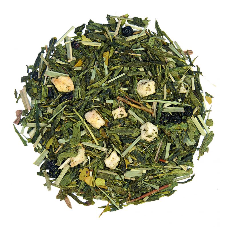 Aromatisierte Mischung aus Grünem Tee, Zitronengras, Heidelbeeren, Waldbeeren- und Heidelbeergeschmack