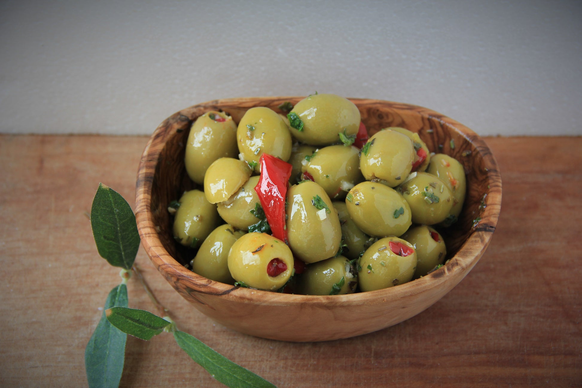 grüne Oliven mit Paprika