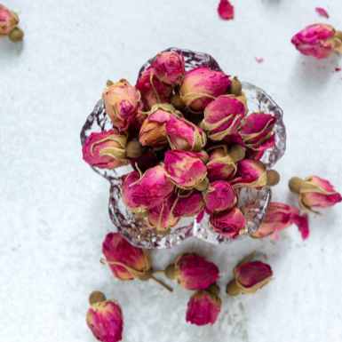 Rosenknospen pink, getrocknet, handverlesen nicht zum verzehr geeignet.