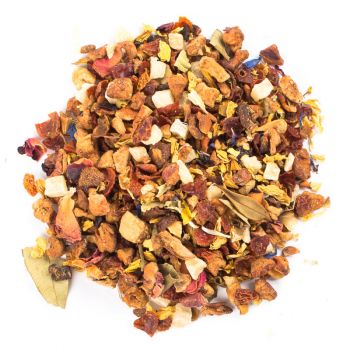 Ein heller, angenehm weicher Früchtetee, dessen süßliche Pfirsichnote ideal mit der zarten Spritzigkeit der Zitronenmyrte harmoniert.